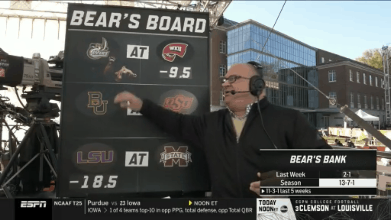 Chris Fallica Bear’s Bank Week 8 2019 Picks On ESPN College Gameday #SaturdaySelections