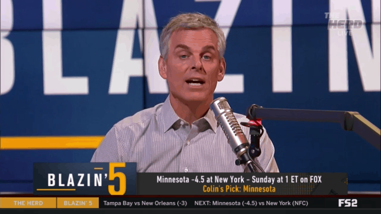 Football | NFL Colin Cowherd Blazing Five NFL 2019 Week 5 Picks On Fox Sports ByGeorge October 5, 2019October 5, 2019 Minnesota at NY Giants – Minnesota (-4.5) More picks next page… Pages: 1 2 3 4 5 6